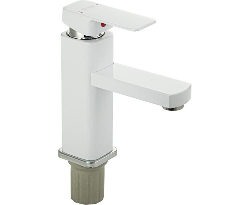 Смесители GFMARK 5977 Смеситель на раковину, шаровый, из высокопрочного пластика АБС, квадратный корпус, модель Элегант, цвет БЕЛЫЙ