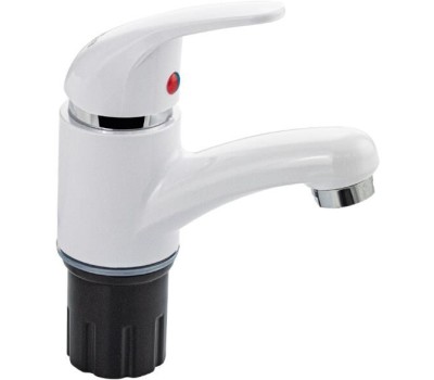 Смеситель для раковины, из высокопрочного пластика АБС, БЕЛЫЙ с коротким изливом, литой корпус, литая ручка, шаровый. Крепление резьба - гайка, картридж d = 40 мм. хромированный аэратор для экономии воды. Габаритные размеры: высота 160 мм, длина 125 мм, диаметр посадочного седла 45 мм, длина резьбы 50 мм, длина подводки 400 мм. Вес - 0.44 кг, объём - 0.0025 м3. В комплекте паспорт, корпус, пластиковая подводка с латунными штуцерами 1/2, крепеж, набор прокладок.