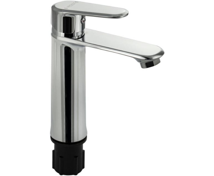 Смеситель для раковины, хромированный, с коротким изливом, литой корпус, литая ручка, шаровый. Крепление резьба - гайка, картридж d = 35 мм. Аэратор для экономии воды. Габаритные размеры: высота 180 мм, длина 150 мм, диаметр посадочного седла 45 мм, длина резьбы 45 мм, длина подводки 450 мм. Вес - 1.36 кг, объём - 0.00262 м3. В комплекте паспорт, корпус, подводка 1/2, крепеж, набор прокладок.