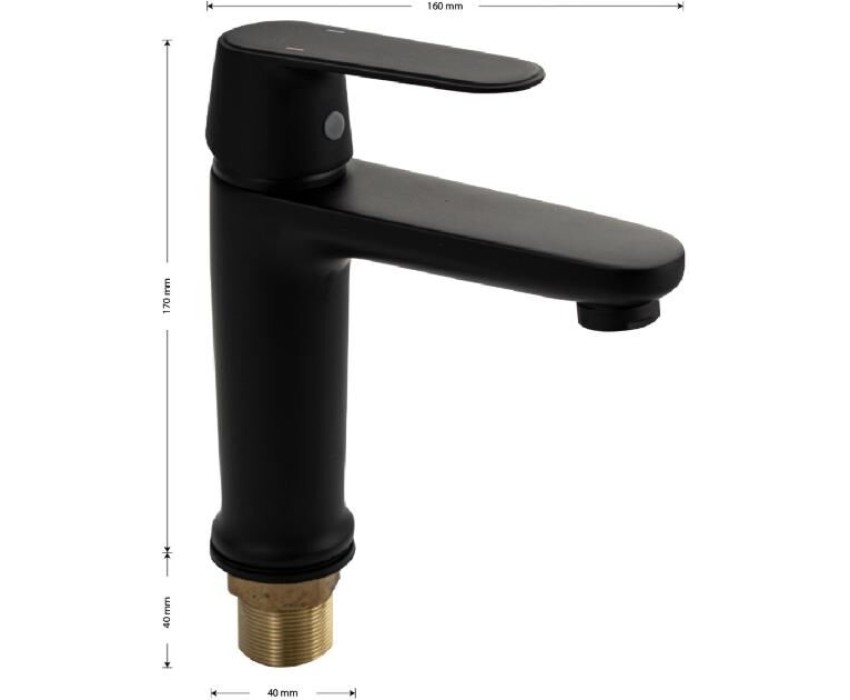 Смеситель для раковины, литой корпус, цвет чёрный, с прямым плоским изливом, ручка литая, шаровый. Крепление резьба - гайка, картридж d = 35 мм. Аэратор для экономии воды. Такая модель может использоваться на домашней кухне, на даче, в медицинских учреждениях и общественных местах. Габаритные размеры: высота 170 мм, длина 160 мм, посадочное седло 40 мм, длина резьбы 40 мм, длина подводки 500 мм. Вес - 1.100 кг, объём - 0,00325 м3. В комплекте паспорт, корпус, подводка 1/2, крепеж, набор прокладок.