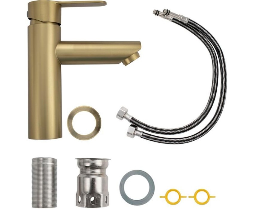 МАГНУС - Смеситель на раковину, литой корпус под матовое золото, из нержавеющей стали марки 201 9452