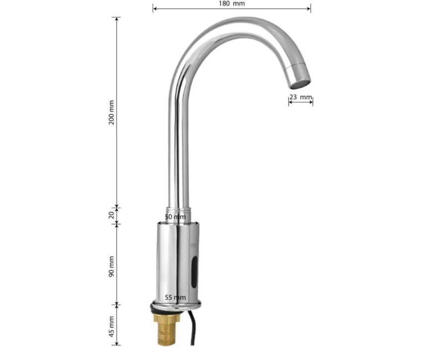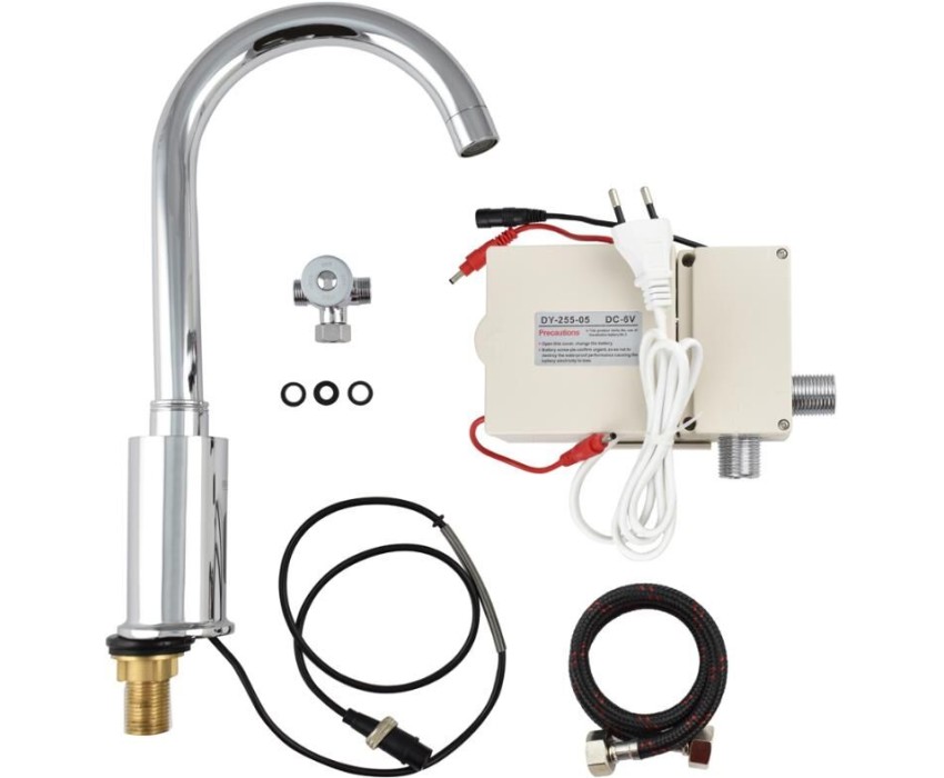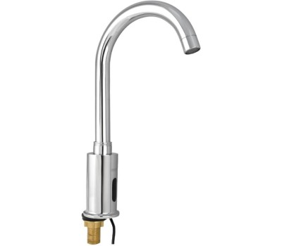 Сенсорный смеситель на раковину и мойку, высокий С-образный излив предназначен для монтажа в жилых домах и общественных помещениях. Изделие выполнено в стиле хай-тек из высококачественного материала с хромовым покрытием, обеспечивающим устойчивость к механическим воздействиям. Кран смешивания горячей и холодной воды с возможностью регулировки размещается под столешницей. Кран включится, если поднести руки к изливу. Бесконтактный принцип работы гарантирует гигиеничность устройства. Устройство снабжено аэратором, позволяющей очистку без использования дополнительных средств. Он насыщает воду воздухом для создания струи, комфортной для гигиенических процедур, и сокращения расхода ценного ресурса. Сенсорный смеситель включает поток воды за счет фотоэлемента. Универсальное питание DC 6V (4 батареи типа "АА", в комплектацию не входят), AC/DC 6V AC 220V (50/60Hz). Габаритные размеры: диаметр посадочного седла 55 мм, высота 310 мм, длина излива 180 мм. Вес - 1,800 кг, объём - 0,01134 м3. В комплекте паспорт, корпус, нижняя часть с программным управлением, крепёж.