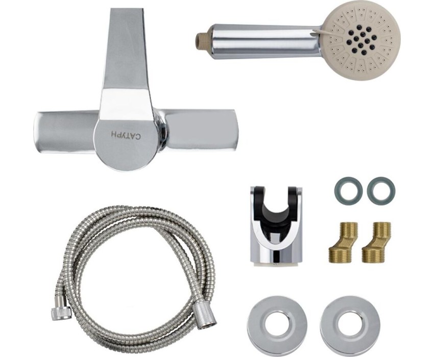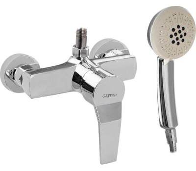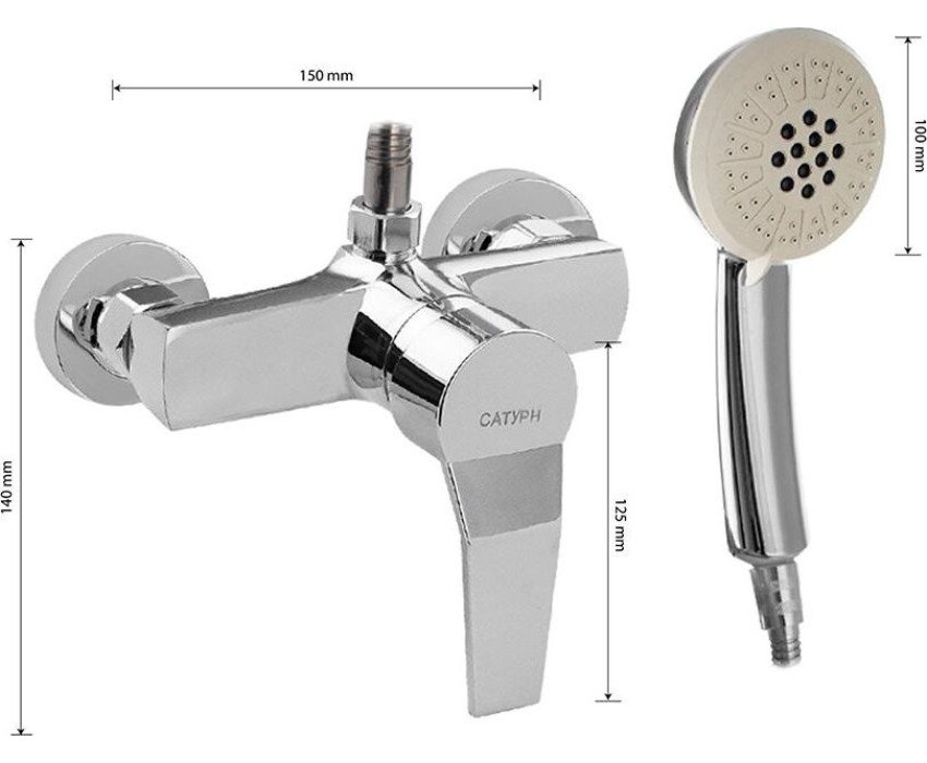 Смеситель хромированный в ванную / душевую комнату без излива, литой корпус, шаровый. Материал изготовления — ЦАМ (цинк-алюминий-медь). Картридж d = 40 мм, литая ручка, чашки и эксцентрики. Габаритные размеры: ширина 150 мм, высота корпуса 140 мм, двухрежимная душевая лейка d = 100 мм, шланг 150 см. Вес - 1,400 кг, объём - 0,00600 м3. В комплекте паспорт, корпус, душевая лейка, шланг, кронштейн, комплект крепежа и прокладок.