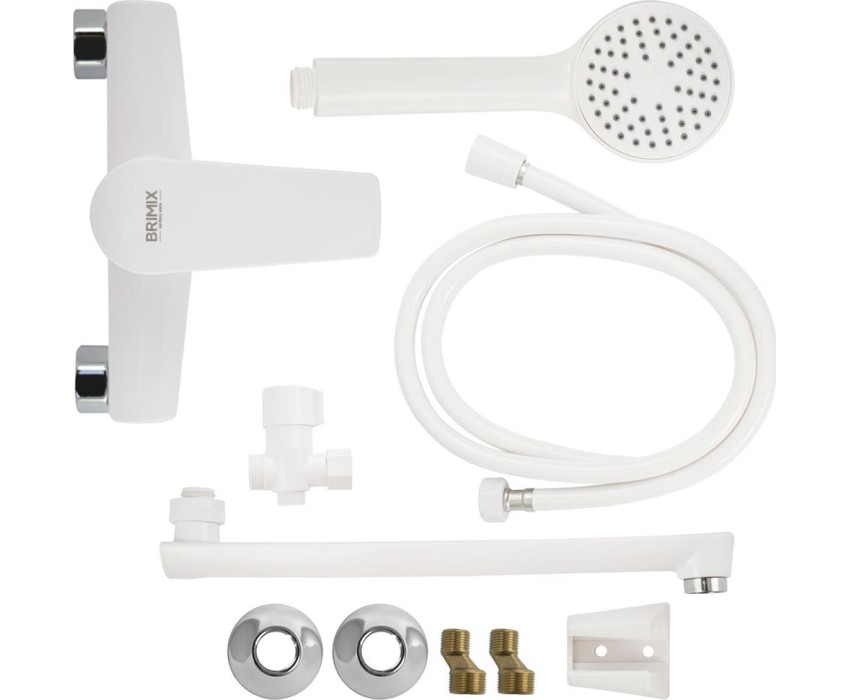 Смеситель для ванны BRIMIX 562 Смеситель в ванную, длинный излив, шаровый, из высокопрочного пластика АБС, БЕЛЫЙ с дивертором м/к
