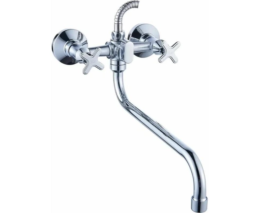 "Смеситель для ванны АНТЕЙ®, серия Кристи - Цвет: хром - Покрытие: никель-хромовое - Кран-букса: 1/2"" дюйма 20 шлиц, латунная с керамическими пластинами, угол поворота 90° - Излив: S-образный, длинный, поворотный, длина – 350 мм - Аэратор: пластиковый, съемный, внутр. резьба Ø22мм В комплекте: лейка для душа (Ø65мм, 1 реж., ABS-пластик), шланг 150 см (нержав. сталь), держатель для лейки (ABS-пластик), для монтажа прилагаются эксцентрики, декоративные накладки."