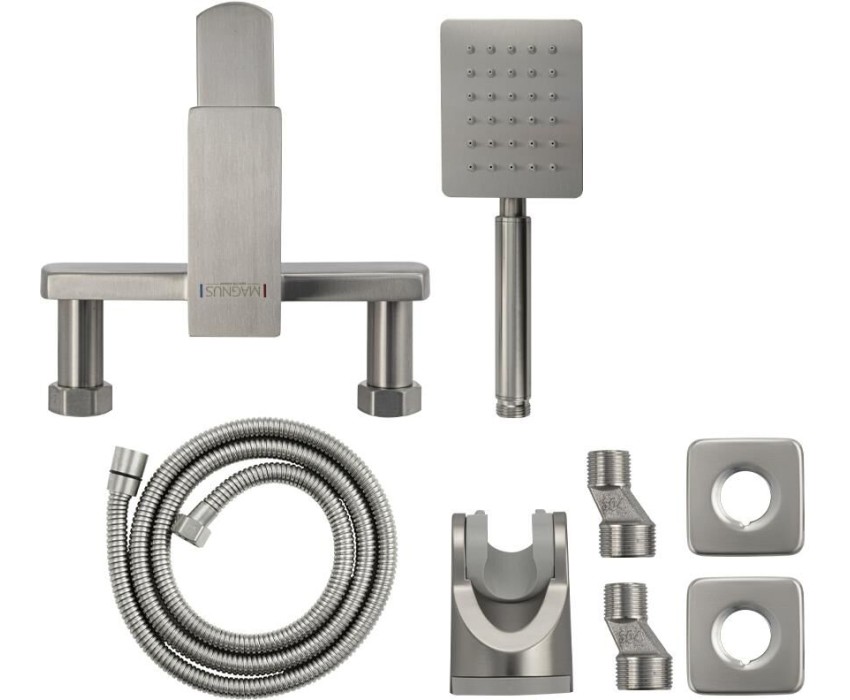 Смеситель МАГНУС 9226 Смеситель для ванны, короткий излив, шаровый, квадратный корпус, из нержавеющей стали марки 304, цвет САТИН