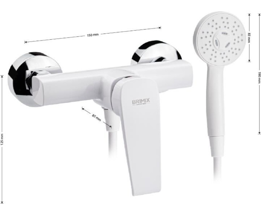 Смеситель из высокопрочного пластика АБС, БЕЛЫЙ в ванную / душевую комнату без излива, литой корпус, шаровый. Картридж d = 40 мм, литая ручка, хромированные чашки и эксцентрики. Габаритные размеры: ширина 150 мм, высота корпуса 125 мм, глубина 85 мм, душевая лейка d = 75 мм, пластиковый шланг 150 см. Вес - 0,91 кг, объём - 0,00514 м3. В комплекте паспорт, корпус, душевая лейка, шланг, кронштейн, комплект крепежа и прокладок.