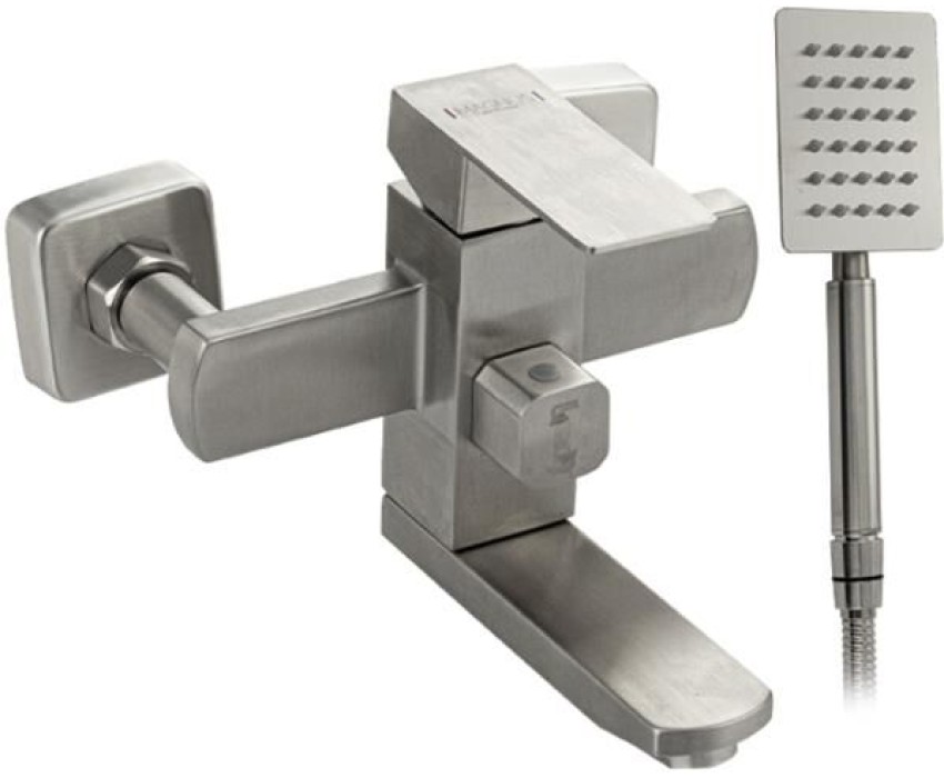 Смеситель матовый, из нержавеющей стали марки 304 в ванную / душевую комнату, с коротким изливом. Картридж d = 35 мм, ручка литая. Квадратный, большой корпус с дивертором м/к на корпусе, аэратор для экономии воды, чашки, гайки и эксцентрики из нержавеющей стали. Габаритные размеры: ширина 150 мм, высота 145 мм, длина 190 мм, длина шланга 150 см, высота лейки 215 мм. Вес - 2,63 кг, объём - 0,00783 м3. В комплекте корпус с изливом, дивертор, кронштейн, паспорт, крепёж, прокладки, лейка, шланг.
