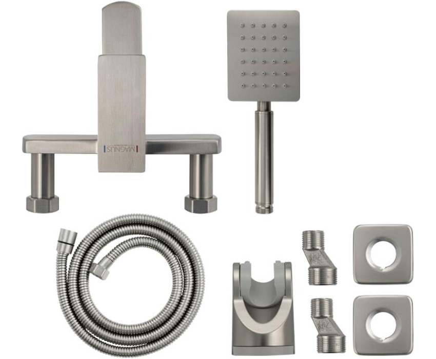 МАГНУС - Смеситель для ванны, короткий излив, шаровый, квадратный корпус, из нержавеющей стали марки 304, цвет САТИН. 9226