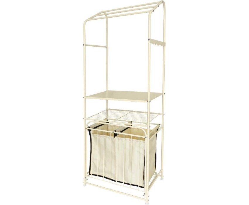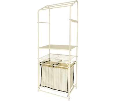 Двойная корзина для белья. Планка с крючками с одной стороны. Перекладины для сушки полотенец. Габариты 600х350х1600 мм. Размер упаковки 610х685х90 мм. Вес 6,6 кг. Высота между полками 190 мм