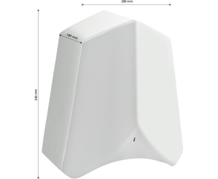 Электрическая сушилка для рук, скоростная, ПРЕМИУМ, c направленным потоком воздуха из двух плоских сопел, расположенных под углом друг к другу, цвет белый, с неоновой подсветкой, незаменима в местах с большой проходимостью людей (бизнес-центры, торговые центры, гостиницы, кинотеатры, рестораны). Корпус сушилки изготовлен из прочного пластика АБС белого цвета, который выдерживает различные механические воздействия. Прибор отличается средней мощностью и большой скоростью, что позволит использовать оборудование в различных помещениях с ограниченным электропотреблением или старой проводкой. Для удобства эксплуатации в сушилке для рук предусмотрен инфракрасный датчик движения, который включает прибор без прикосновения к нему, при поднесении рук. Сушилка оснащена надёжным и долговечным двигателем. Прибор облачён в ударопрочный корпус. Параметры - 1100Вт, автоматическая, АС 220-230В 50/60Гц, сенсор включения 50 - 150 мм, скорость потока >15 м/c, температура воздуха >50°C, влагозащищенность IPX1. В комплекте сушилка