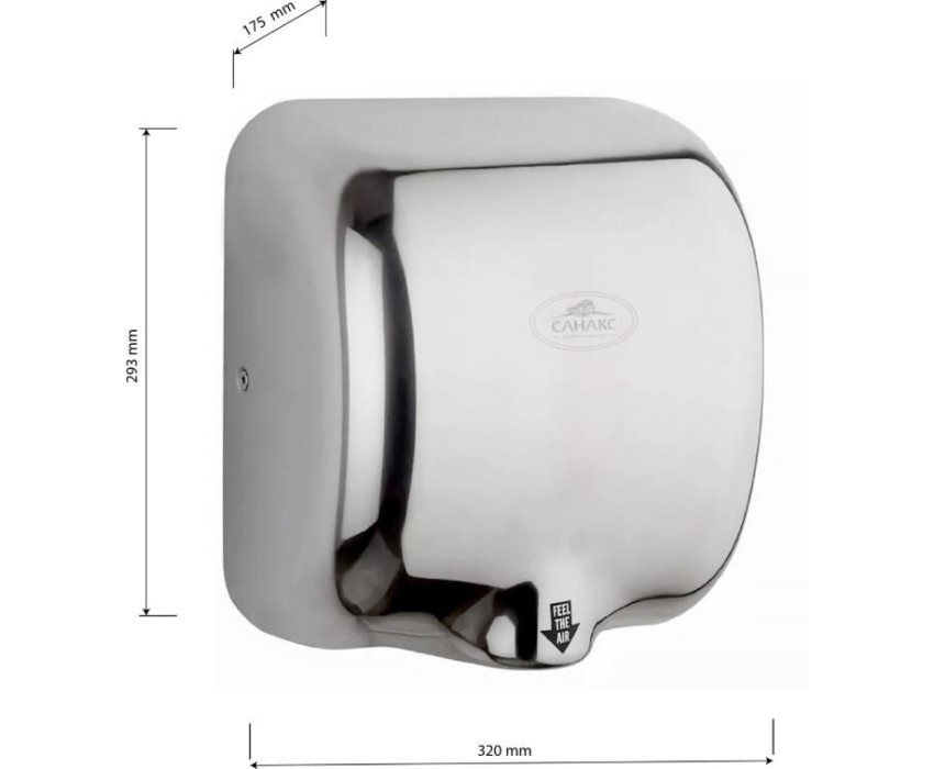 САНАКС - Сушилка для рук, скоростная, антивандальная корпус из нержавеющей стали, хромированная, 1800Вт 6950