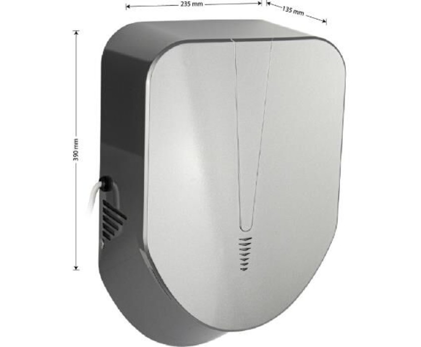 Электрическая сушилка для рук, скоростная, c направленным потоком воздуха из двух плоских сопел, расположенных под углом друг к другу, цвет серый, с неоновой подсветкой, незаменима в местах с большой проходимостью людей (бизнес-центры, торговые центры, гостиницы, кинотеатры, рестораны). Корпус сушилки изготовлен из прочного пластика АБС серого цвета, который выдерживает различные механические воздействия. Прибор отличается средней мощностью и большой скоростью, что позволит использовать оборудование в различных помещениях с ограниченным электропотреблением или старой проводкой. Для удобства эксплуатации в сушилке для рук предусмотрен инфракрасный датчик движения, который включает прибор без прикосновения к нему, при поднесении рук. Сушилка оснащена надёжным и долговечным двигателем. Прибор облачён в ударопрочный корпус. Параметры - 1500Вт, автоматическая, АС 220-230В 50/60Гц, сенсор включения 50 - 150 мм, скорость потока >95 м/c, температура воздуха >40°C, влагозащищенность IPX1. В комплекте сушилка, паспорт. Габаритные размеры: высота 390 мм, ширина 235 мм, глубина 135 мм. Вес - 4 кг, объем - 0,02424 м3