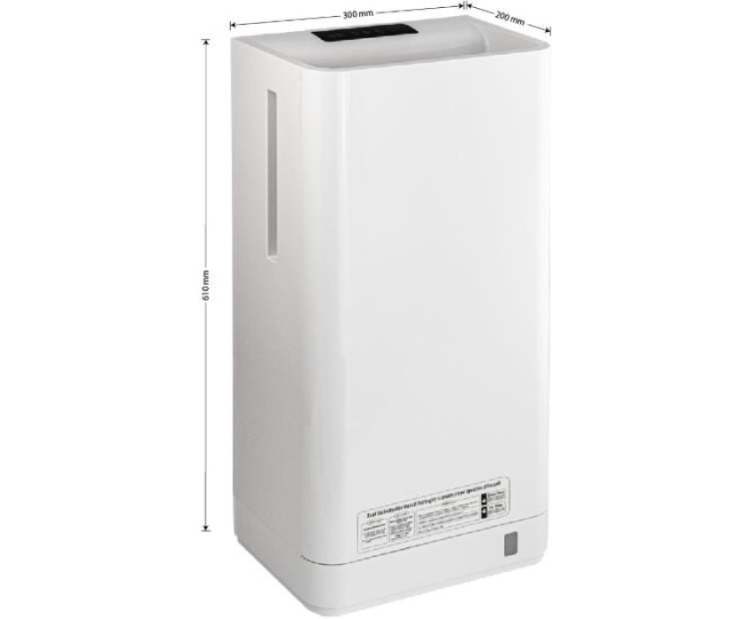 Сушилка для рук погружная, высокоскоростная, бизнес класса, корпус пластик АБС, цвет белый, с неоновой подсветкой. Режим работы горячий - холодный воздух. Две скорости 1800 Вт. Датчик перегрева. НЕРА фильтр. Время работы 7-9 сек. Габаритные размеры: высота 610 мм, ширина 300 мм, глубина 200 мм. Вес - 8,500 кг, объем - 0,06030 м3. В комплекте сушилка, паспорт, крепёж.