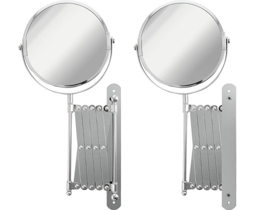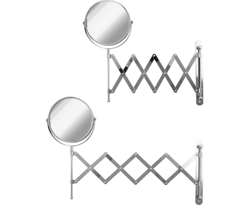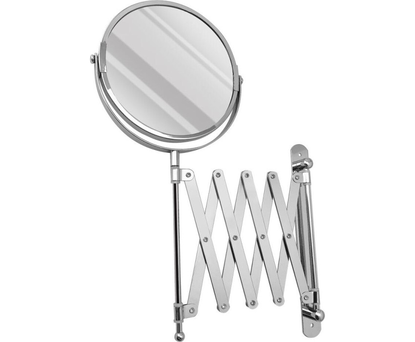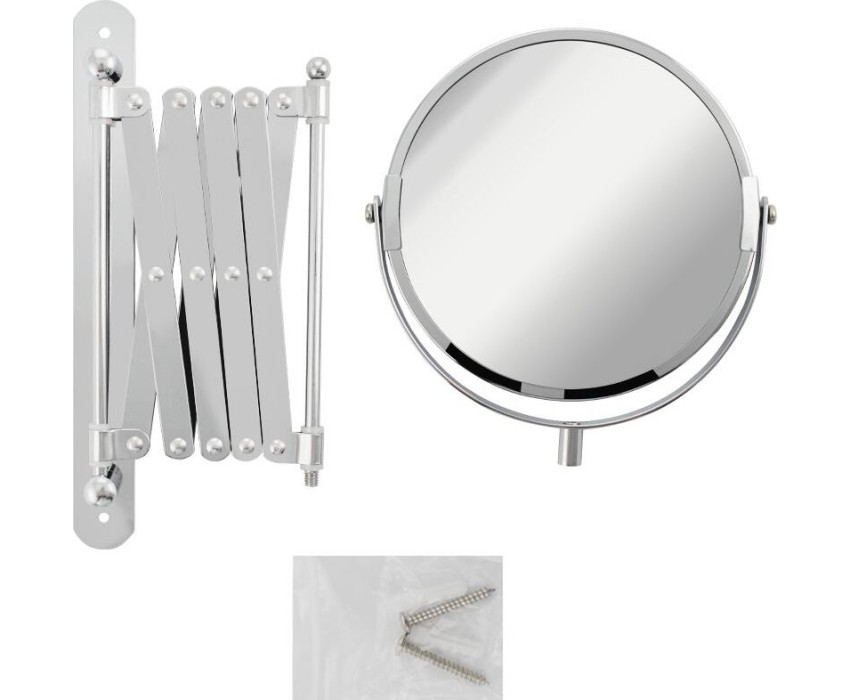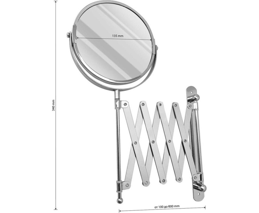 Зеркало настенное, косметическое, раздвижное, двустороннее, с увеличительным эффектом. Изготовлено из прочной нержавеющей стали с хромированным покрытием, которое придает безупречный стильный вид и долговечность. Хромированное покрытие очень стойко переносит истирания и обеспечивает зеркальный блеск изделия. Установлено на металлический хромированный держатель, позволяющий поворачиваться вокруг своей оси и регулировать угол наклона модели. Снабжено механизмом «гармошка», которое позволяет зеркалу выдвигаться на требуемое расстояние и компактно складываться. Одна из сторон зеркала имеет 3х-кратное увеличение удобное для косметических процедур, нанесения макияжа и бритья. Монтируется к стене при помощи крепления, входящего в комплект. Габаритные размеры: диаметр 135 мм, высота 340 мм, длина от 100 до 600 мм. Вес - 0,800 кг, объём - 0,00320 м3.