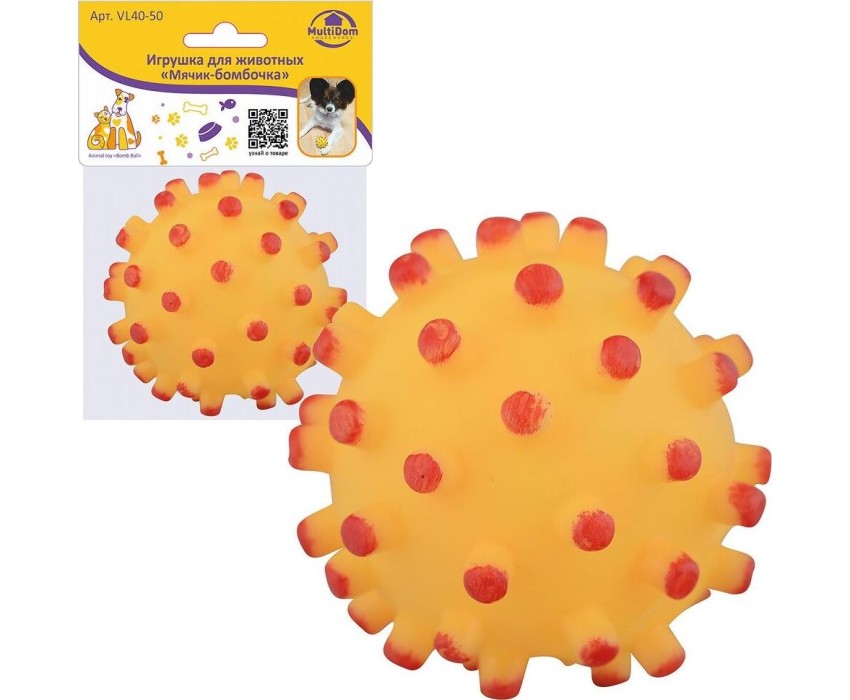 Игрушка MULTIDOM Игрушка для животных "Мячик-бомбочка". Диаметр 6,5 см. VL40-50