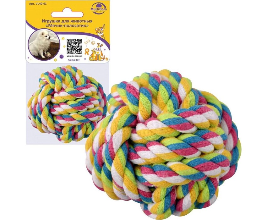 Игрушка MULTIDOM Игрушка для животных "Мячик-полосатик" VL40-61