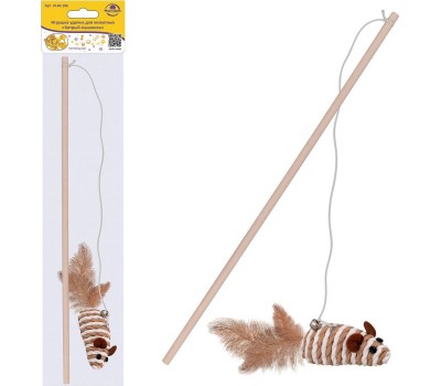 Игрушка-удочка для животных "Хитрый мышонок" VL40-106 Материал: Синтетический материал, Дерево, Натуральное волокно (Сизаль) Общая длина 95 см.