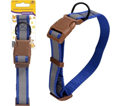 Ошейник "Светоотражатель". Размер М. VL40-5 Материал: Текстиль (Полиэстер), Пластмасса (PP), Металл РАЗМЕР М. ширина, см./длина, см. 2/26-43. обхват шеи см. 24-41