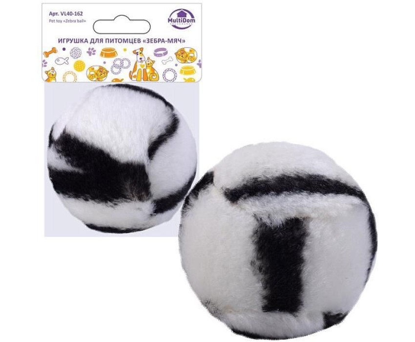 MULTIDOM Игрушка для питомцев "Зебра-мяч". Диаметр 4 см. VL40-162