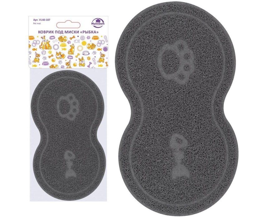 Коврик под миски необходим для чистоты в доме, где живут собаки или кошки, так как корм очень часто выпадает из тарелки и разноситься по всей квартире. Подходит для мисок с кормом и водой. Коврик не скользит по полу, а миски надёжно держатся на его поверхности, он не впитывает запахи и не пропускает воду. Коврик можно использовать как подставку под автокормушку или лоток для птиц, грызунов и других домашних животных. Коврик очень прост в уходе, стряхните остатки корма, очистите пылесосом или помойте коврик под струёй тёплой воды. Коврик быстро сохнет. Изготовлен из полимерного материала (поливинилхлорид). Размер 45х26 см.