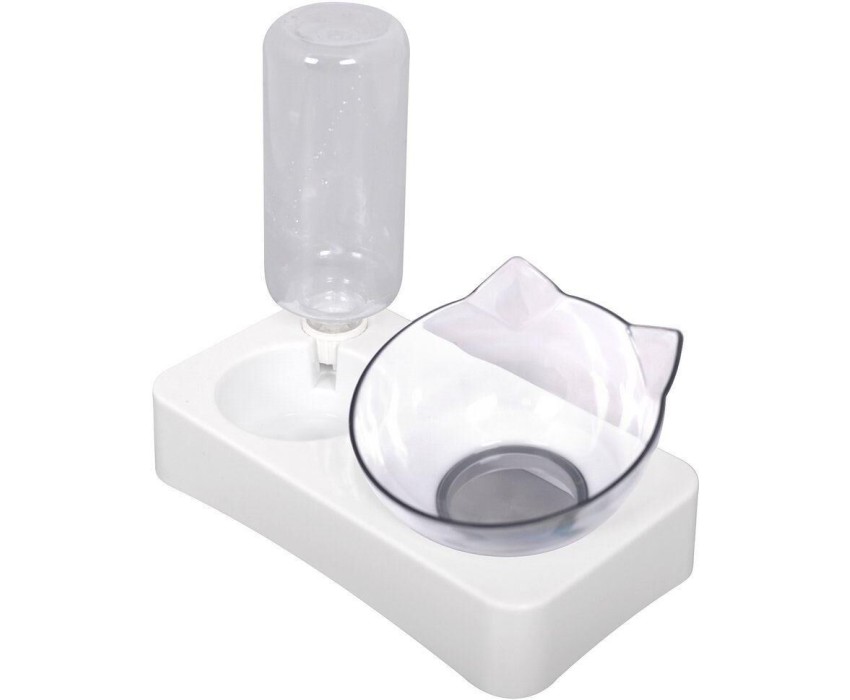 Миска для кошки на подставке с автопоилкой. Миска может применяться как для сухих, так и для влажных кормов. Сглаженные бортики миски защитят кошку от случайных травм во время приёма пищи. Бутылка для воды имеет специальное устройство в крышке, для автоматической подачи воды. Наполните бутылку водой, накрутите крышку, переверните бутылку и вставьте её в специальное отверстие в подставке, надавив на дно бутылки. Вода поступает постепенно, по мере убывания, поэтому у вашего питомца всегда будет чистая и свежая вода. Объём бутылки 450 мл, ваш питомец будет обеспечен водой на 2-3 дня. Миска может использоваться для кормления мелких пород собак и щенков. Материал, из которого изготовлена миска и бутылка, безвреден для вашего питомца. Не требует особого ухода, достаточно перед первым использованием помыть мыльным раствором и сполоснуть проточной водой. Далее мыть по мере загрязнения. Размер 24х22х13 см. Объём миски для корма 350 мл, ёмкость для воды 150 мл, объём бутылки 450 мл.