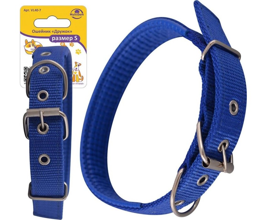 Ошейник "Дружок". Размер S. VL40-7 Материал: Полиэстер, пластмасса, металл РАЗМЕР-S ширина, см./длина, см-2/42 обхват шеи, см-26-33