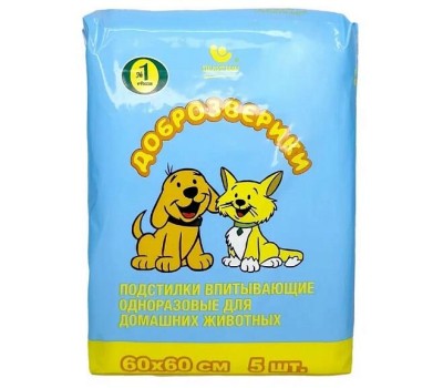 MULTIDOM Подстилки впитывающие одноразовые для животных 60х60см, 5 шт. П60х60С/5