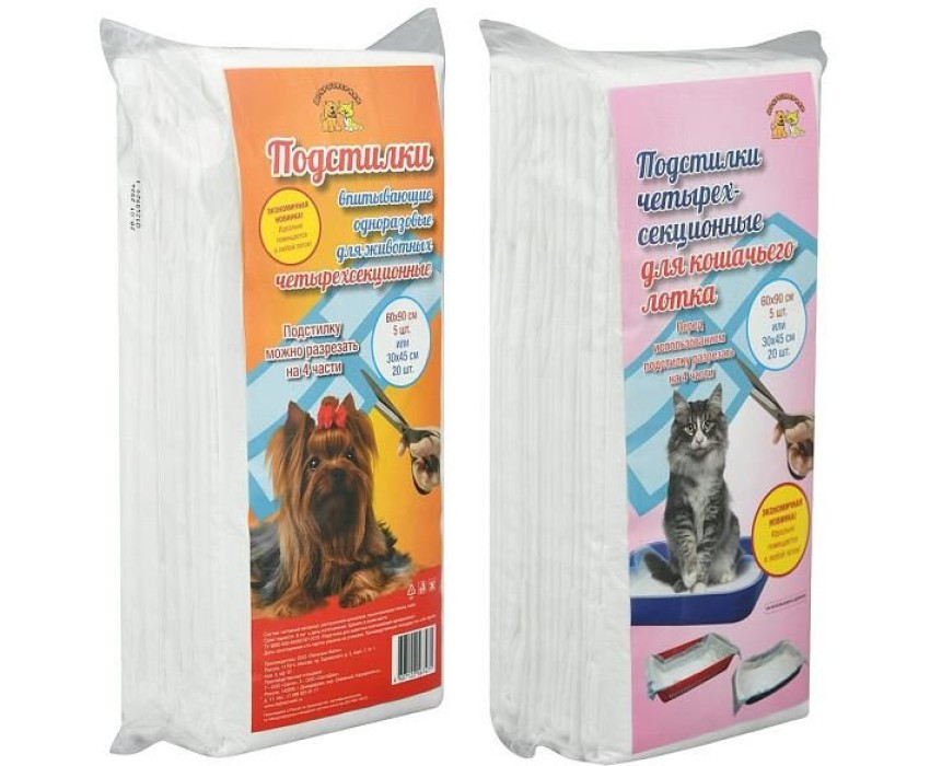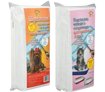 Подстилки для животных пригодятся в любом доме, где есть питомец! Они универсальны, их можно брать с собой в дорогу или к ветеринару, а можно использовать дома. Подстилки отличное средство для защиты мебели, лежанки питомца, пола и сиденья автомобиля от влаги, следов лап, выпавшей шерсти. Водонепроницаемая пленка предотвратит протекание, а впитывающий слой надежно удерживает влагу и запах. Состав: нетканый материал, распушенная целлюлоза, бумага тиссью, водонепроницаемая пленка, клей. Размер 60х90 см.